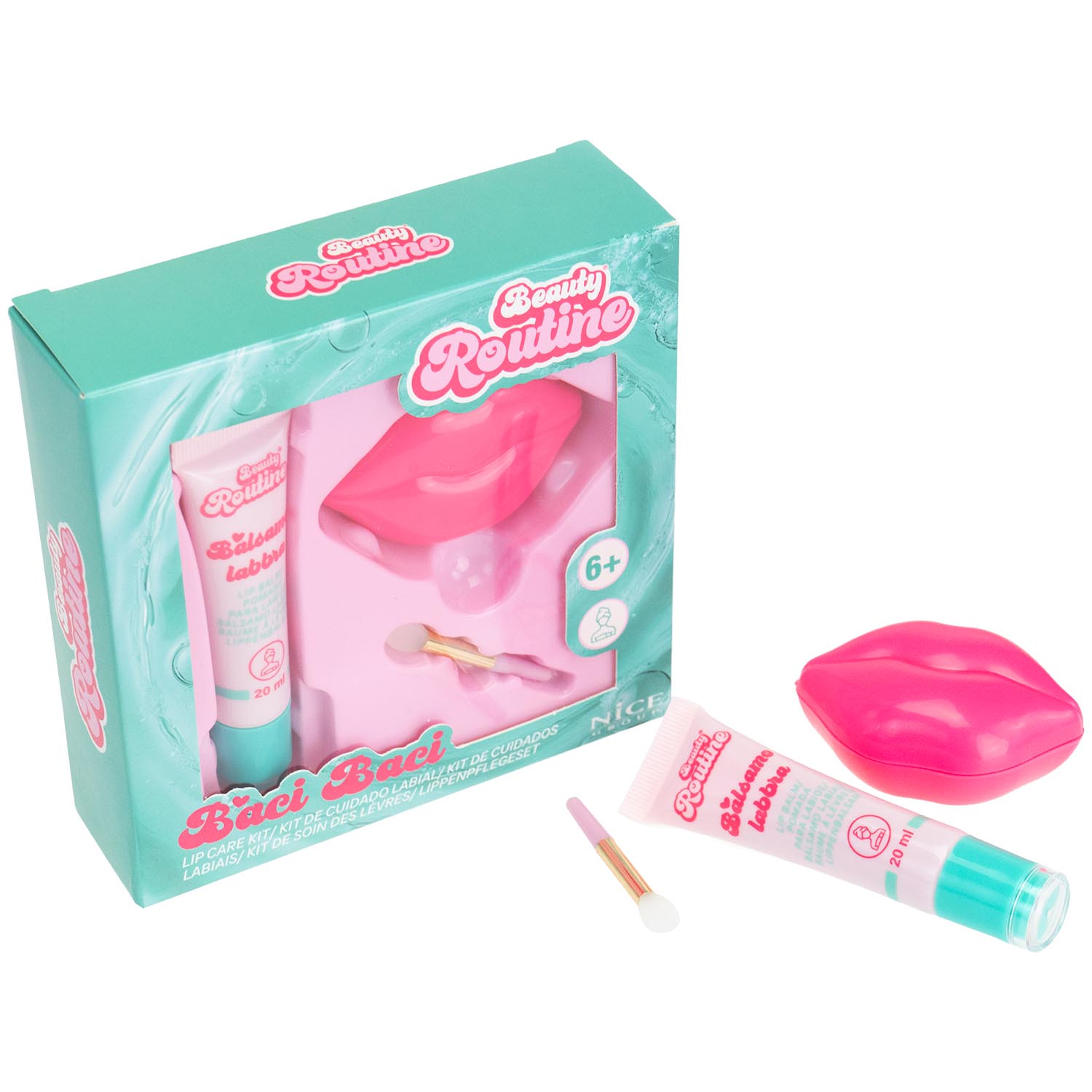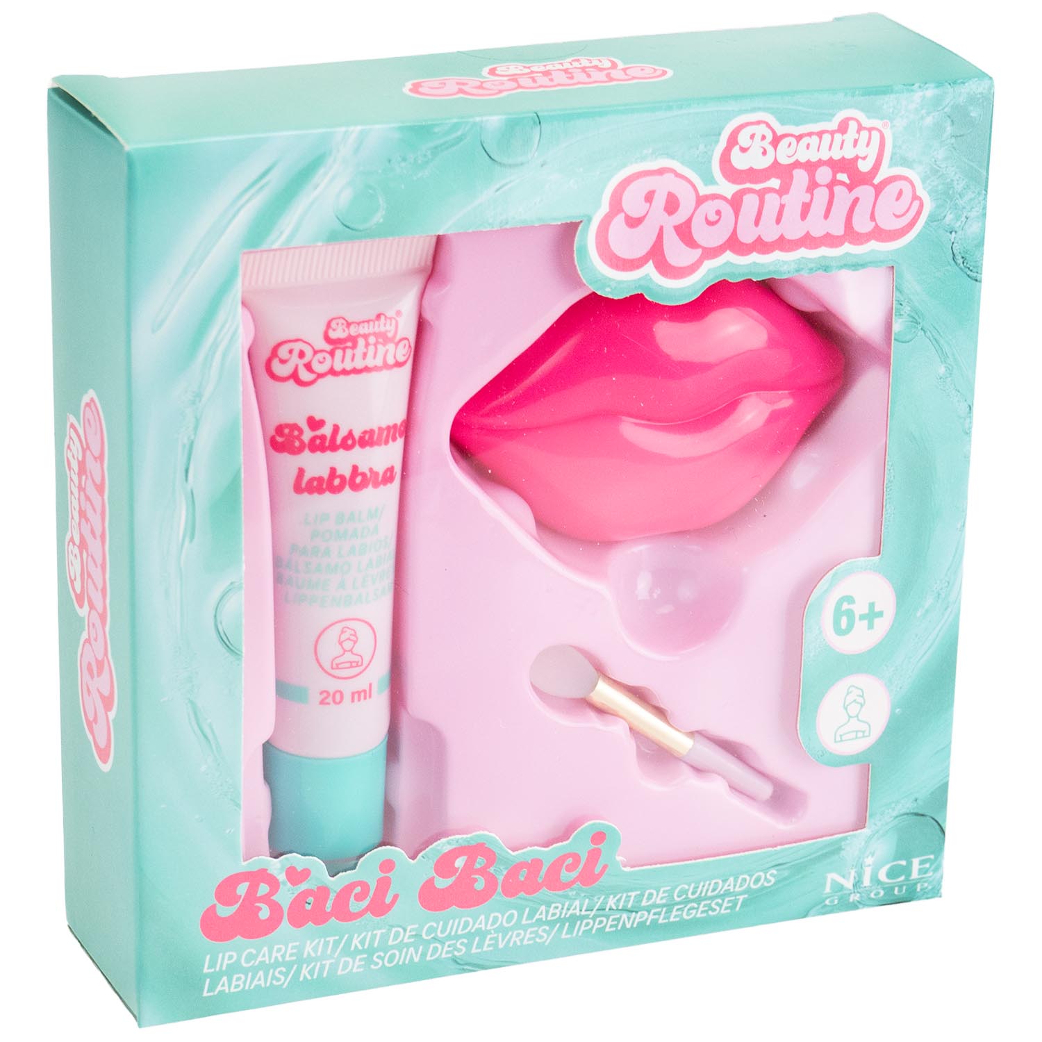 Il set per la cura delle labbra colorato e divertente. Di giorno o prima di andare a dormire, usa Baci Baci e la tua routine sarà ancora più divertente.