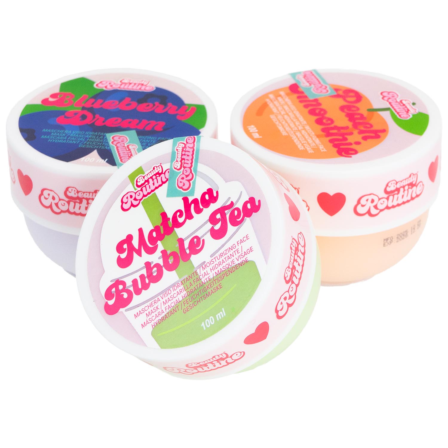 Una maschera viso in crema in tre profumi e tre colori: Mirtillo, Tè Macha e Pesca. Un momento rilassante per te o da condividere con amiche, sorelle o mamma. Morbida, setosa e piacevole per una routine perfetta!